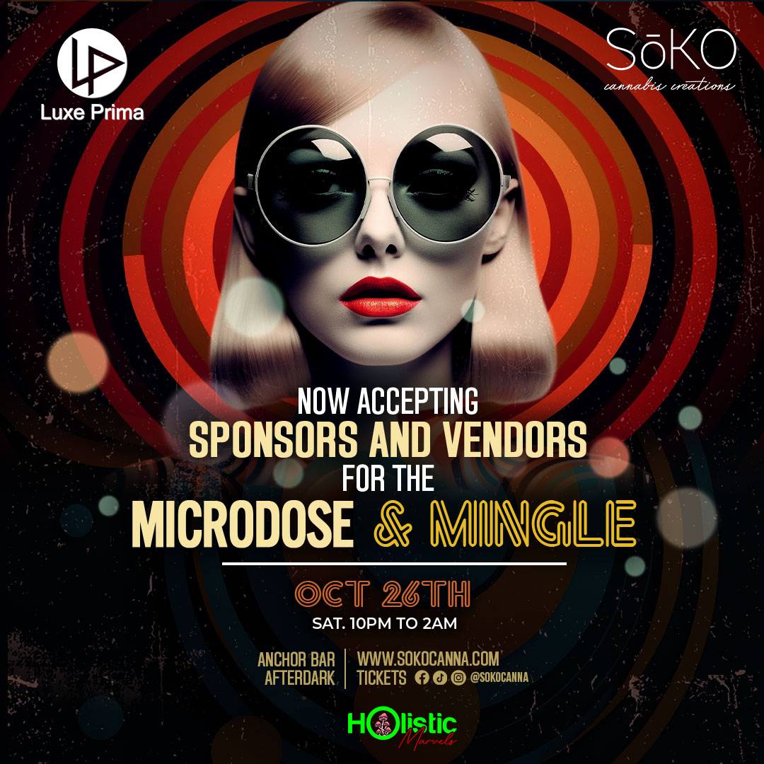 SoKO invites you to an extraordinary evening on October 26th, from 10 pm to 2 am, for the Microdose Mingle. Join us as we delve into the future of holistic wellness and brain food, with holistic and psychedelic vendors and renowned DJs!